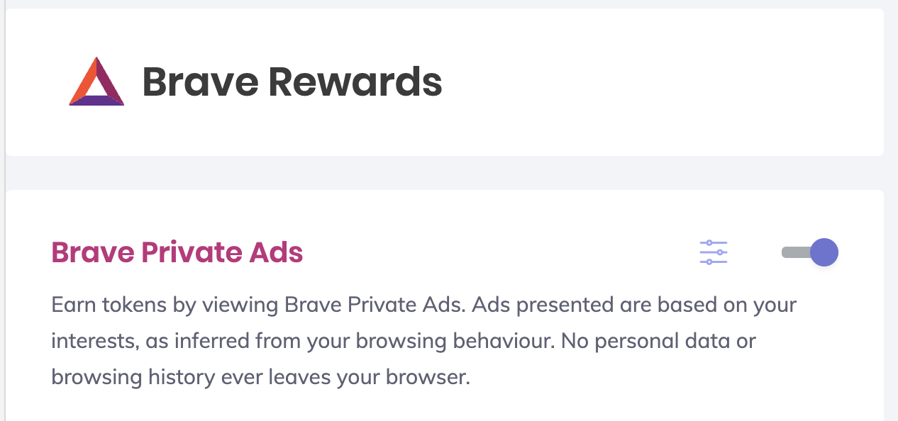 Type brave://rewards in the URL bar and enable Brave Private Ads if you haven't done so already, as seen below. This will enable the Brave Ads module, in which we are planning to include the federated ad timing feature.