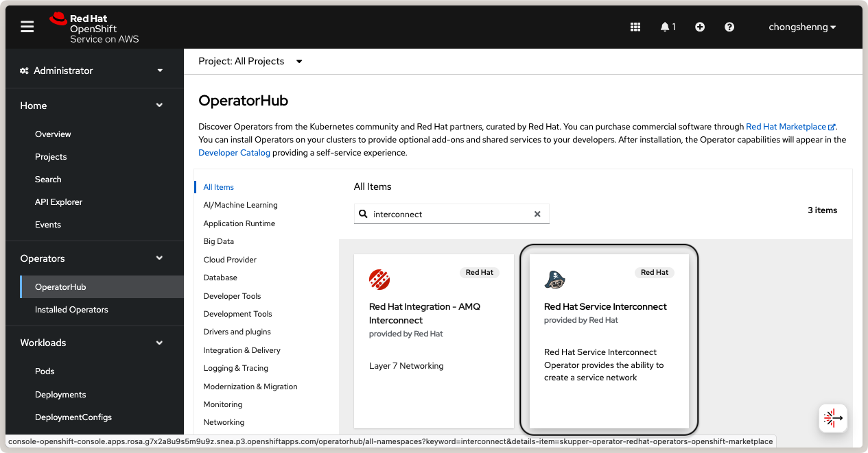 Search for Red Hat Service Interconnect Operator on OperatorHub.¶